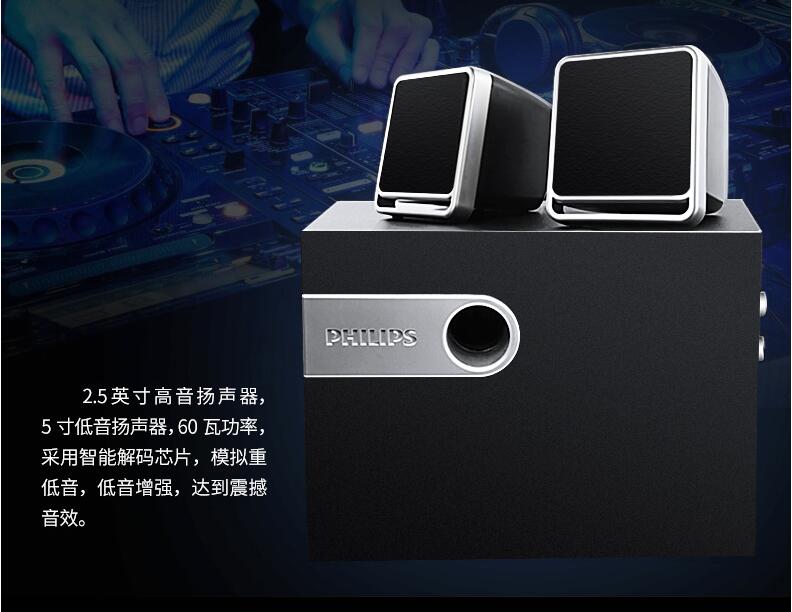 Philips/飛利浦SPA2341/93 電腦音響家用臺式筆記本低音炮多媒體2.1音箱桌面客廳電視通用超重低音影響